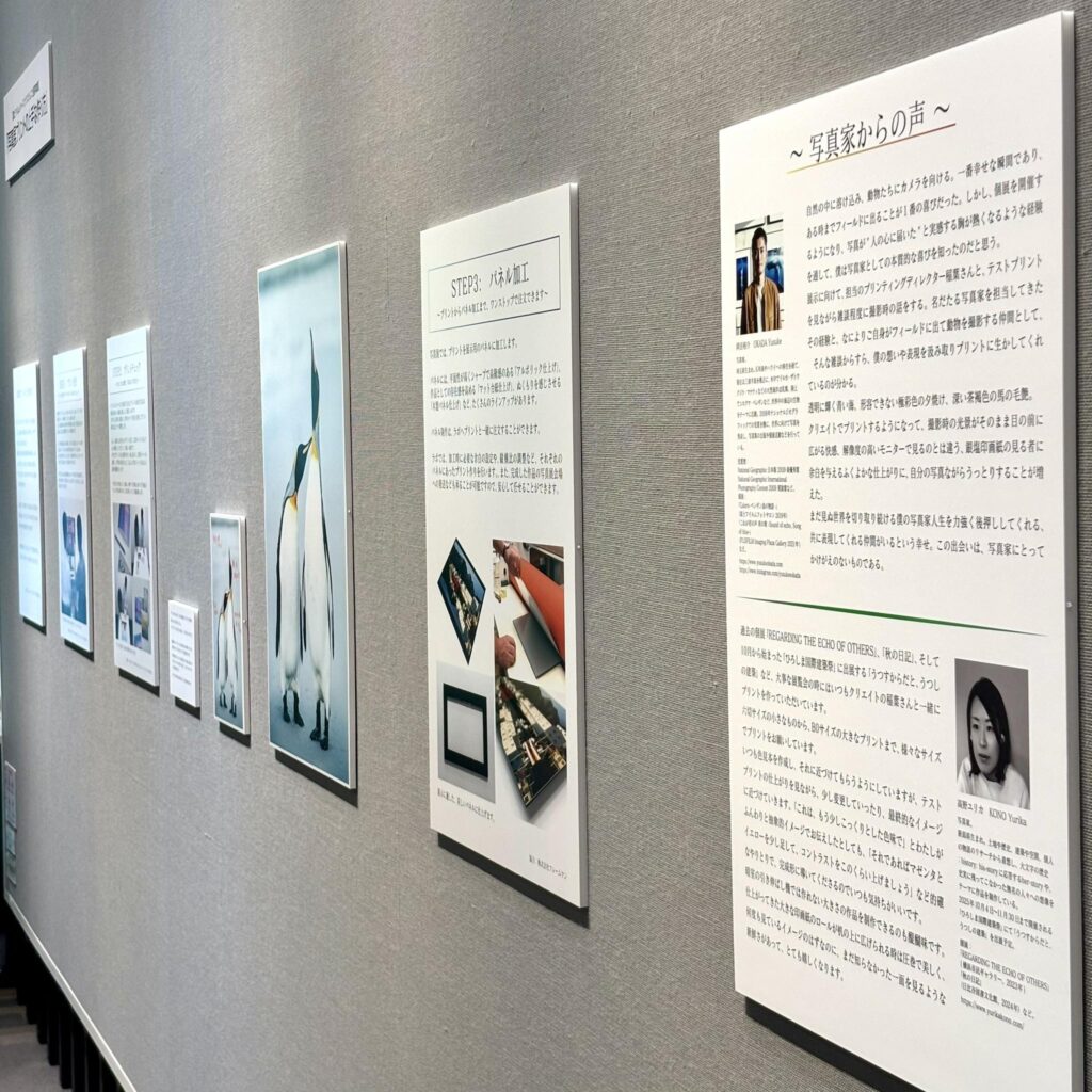 展示に向けて担当のプリンティングディレクター稲葉氏と、テストプリントを見ながら雑談程度に撮影時の話をする。名だたる写真家を担当してきたその経験と、なにより自身がフィールドに出て動物を撮影する仲間として、そんな雑談からすら僕の想いや表現を汲み取りプリントに生かしてくれているのが分かる。